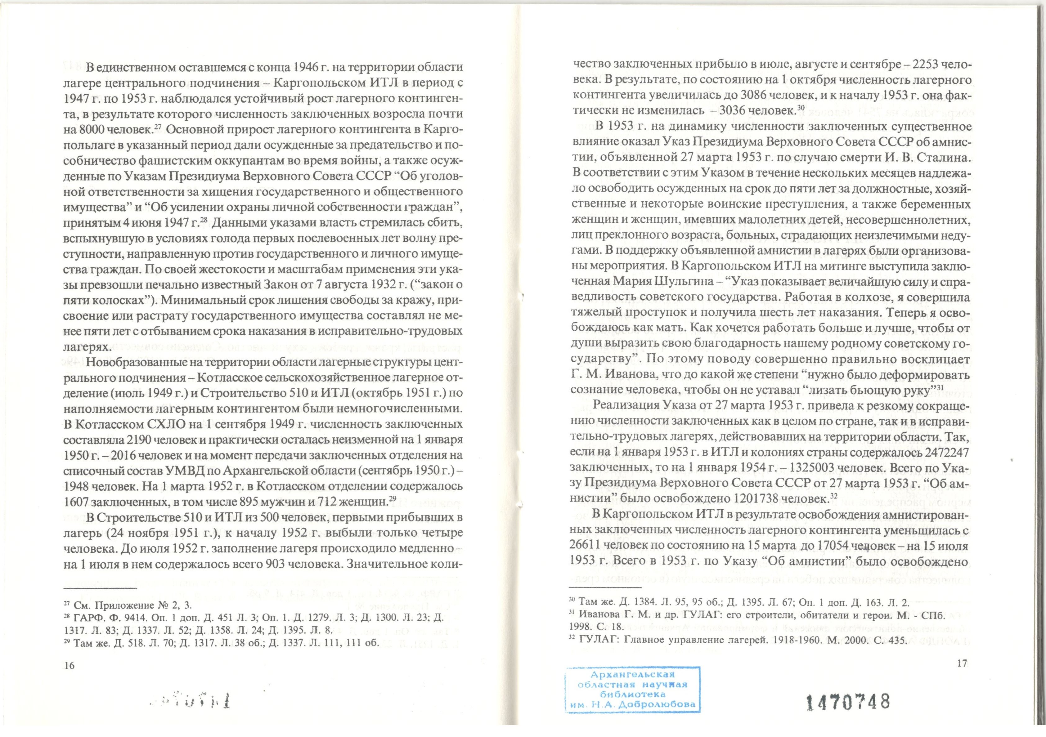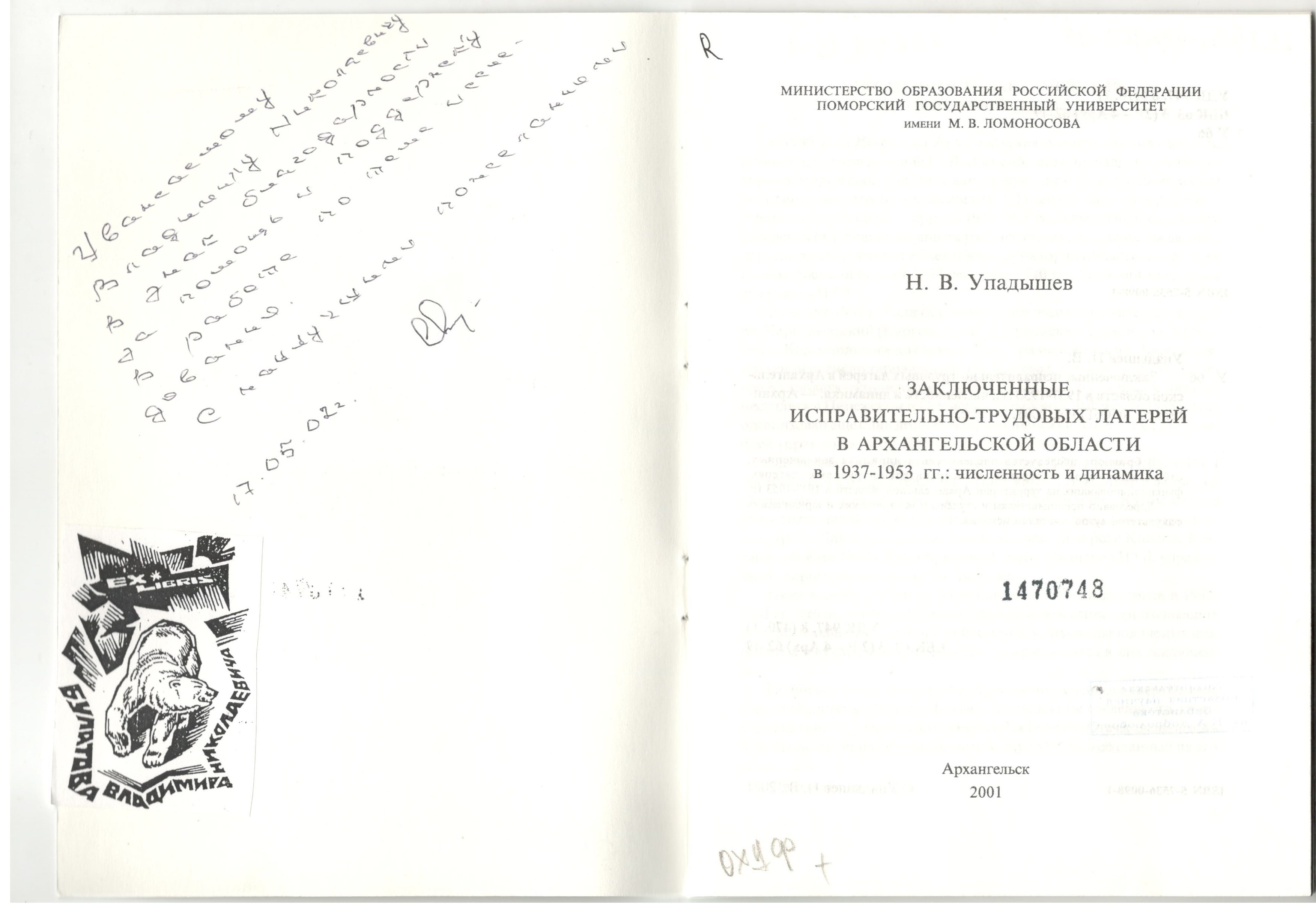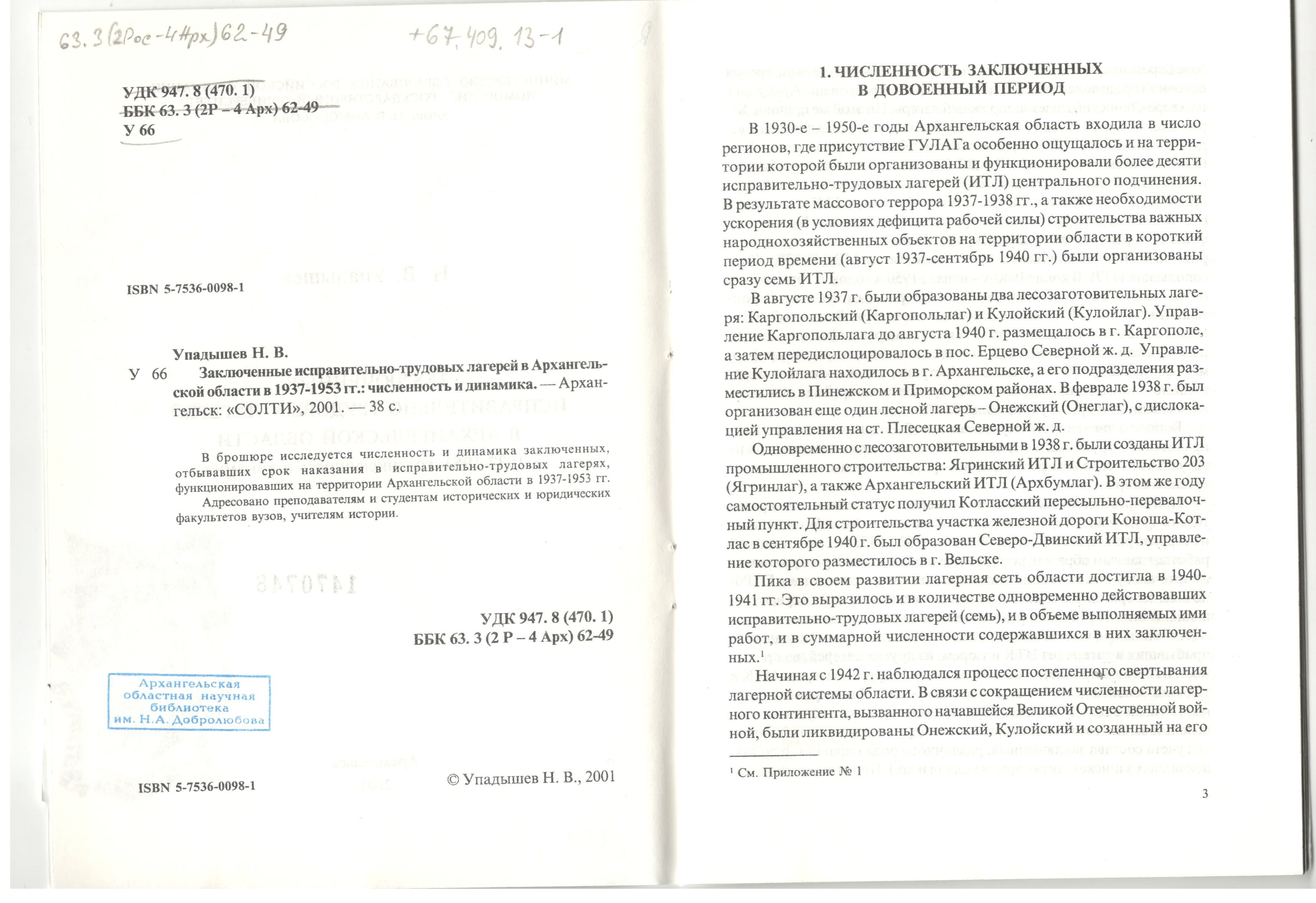 Упадышев В.Н. Заключенные исправительно-трудовых лагерей в Архангельской области в 1937-1953 гг.: численность и динамика. Монография