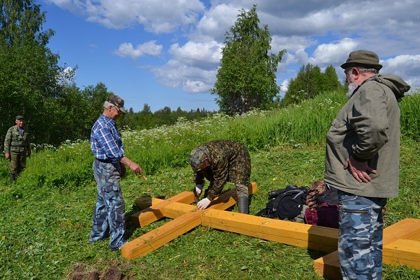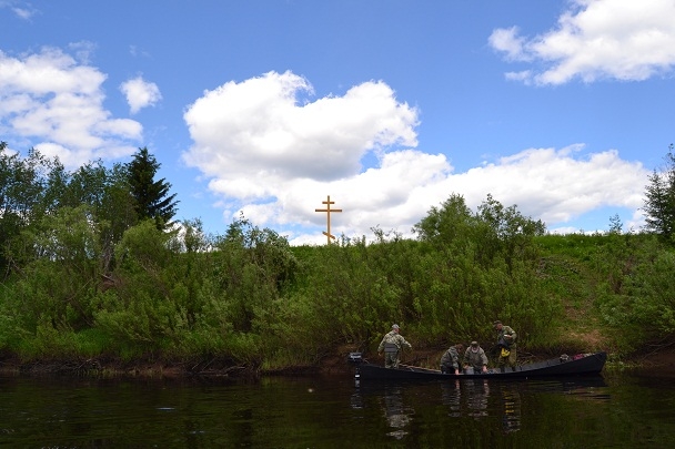 «Добираться пришлось на лодках, потому что дорог здесь уже давно нет. На берегу реки Ваеньга, в Виноградовском районе, в годы богоборчества находился концлагерь. Здесь были физически уничтожены многие сотни людей во имя «светлого будущего». Цель нашей экспедиции — оставить памятный знак на месте бывшего концлагеря и поселка, который находился там до 1963 года. Что может быть выше, чем знамение Креста Господня? Время постепенно стирает весь ужас происшедшего, но мы должны всегда помнить об этом, чтобы подобное уже более никогда не повторялось в нашем государстве», - сказал отец Димитрий.
