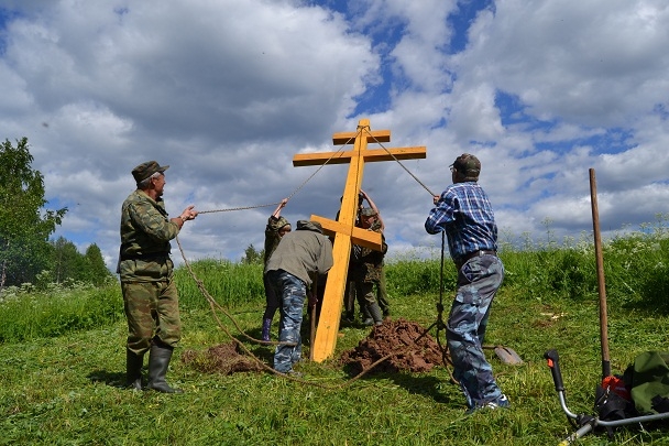 Памятный крест установили на месте заброшенного поселка Ергус (Виноградовский район Архангельской области), где в годы Советской власти находился концентрационный лагерь. Чин освящения совершил благочинный Виноградовского округа протоиерей Димитрий Гордиенко.