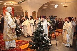 Митрополит Даниил поздравил духовенство и паству с праздником Рождества Христова и днем памяти священномученика Николая Родимова, служившего на протяжении 30 лет настоятелем Свято-Троицкого храма.